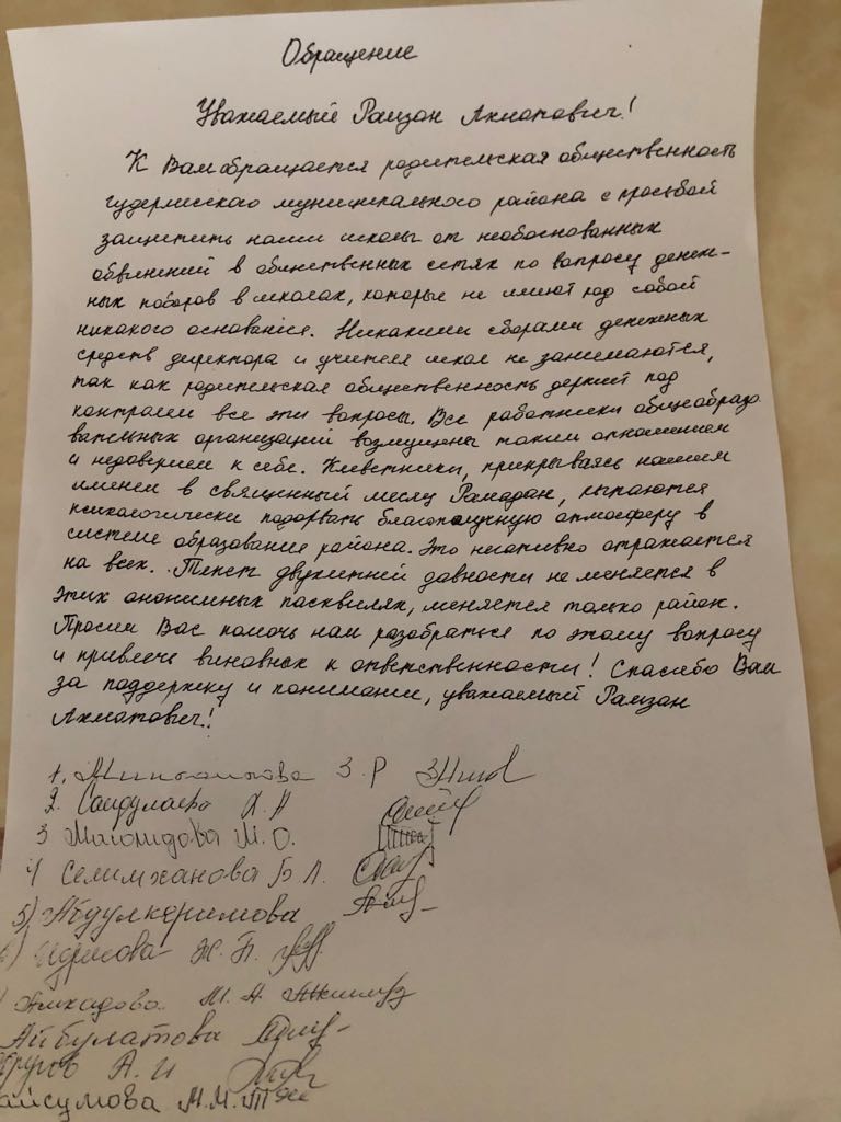 Обращение родительской общественности к Главе ЧР Р.А.Кадырову.